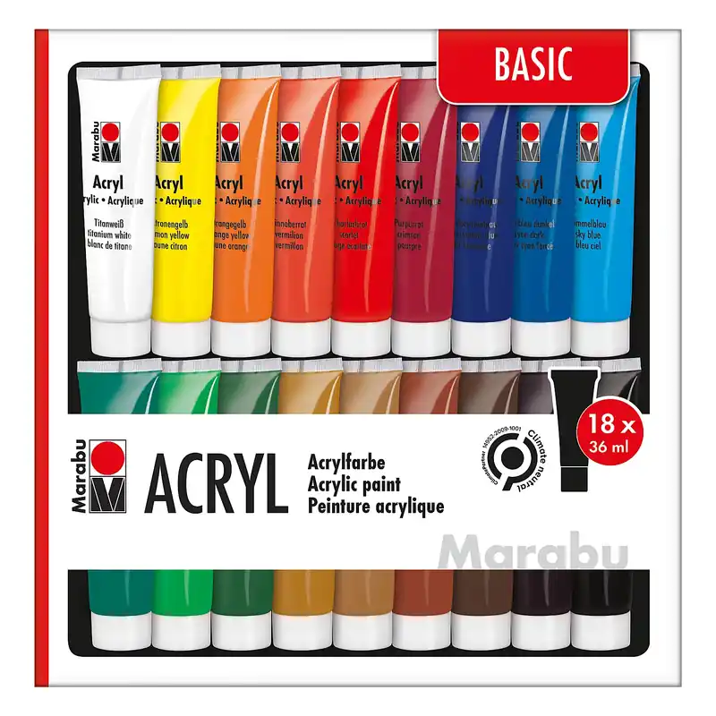buttinette Peintures acryliques, contenu : 18 tubes de 12 ml chacune, couleurs assorties.